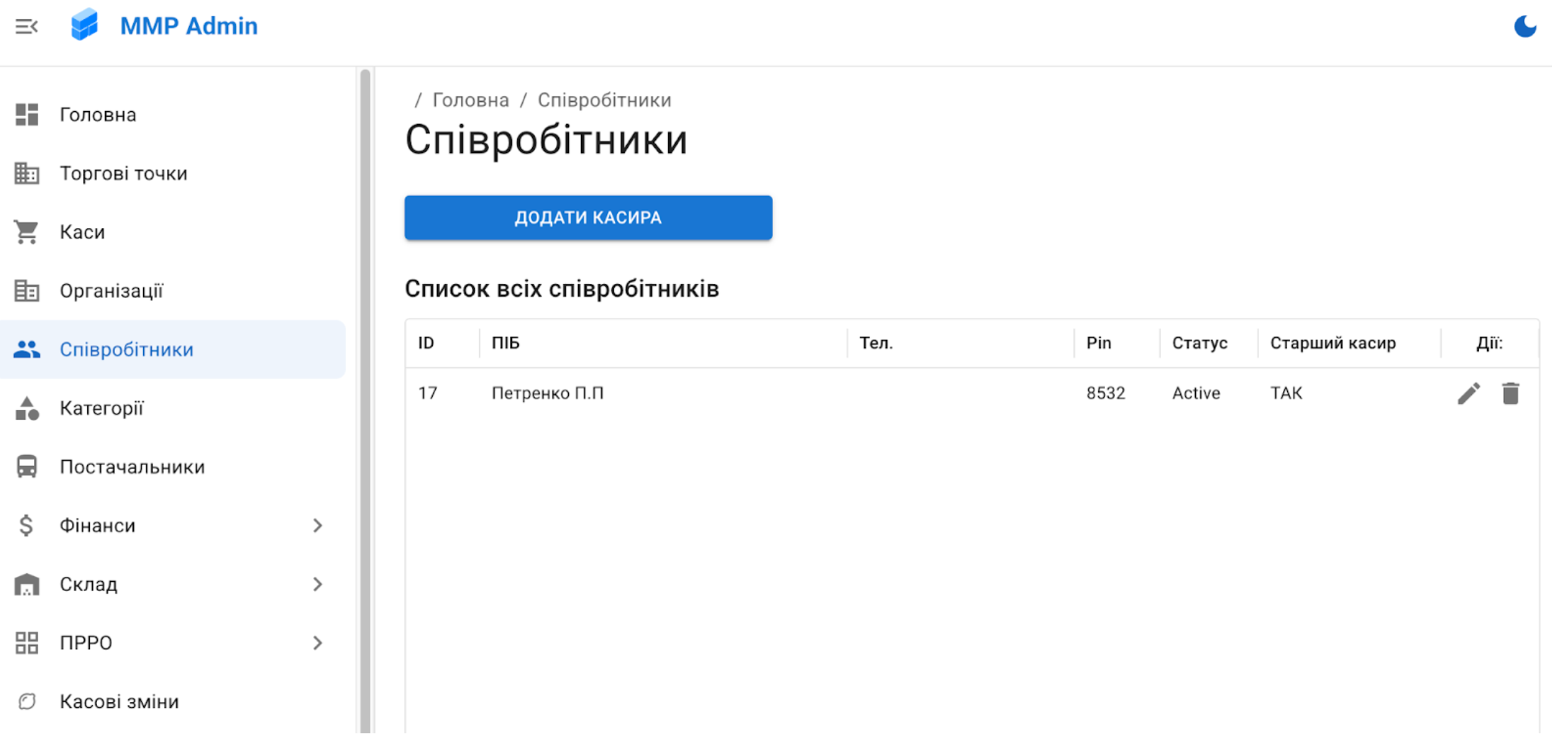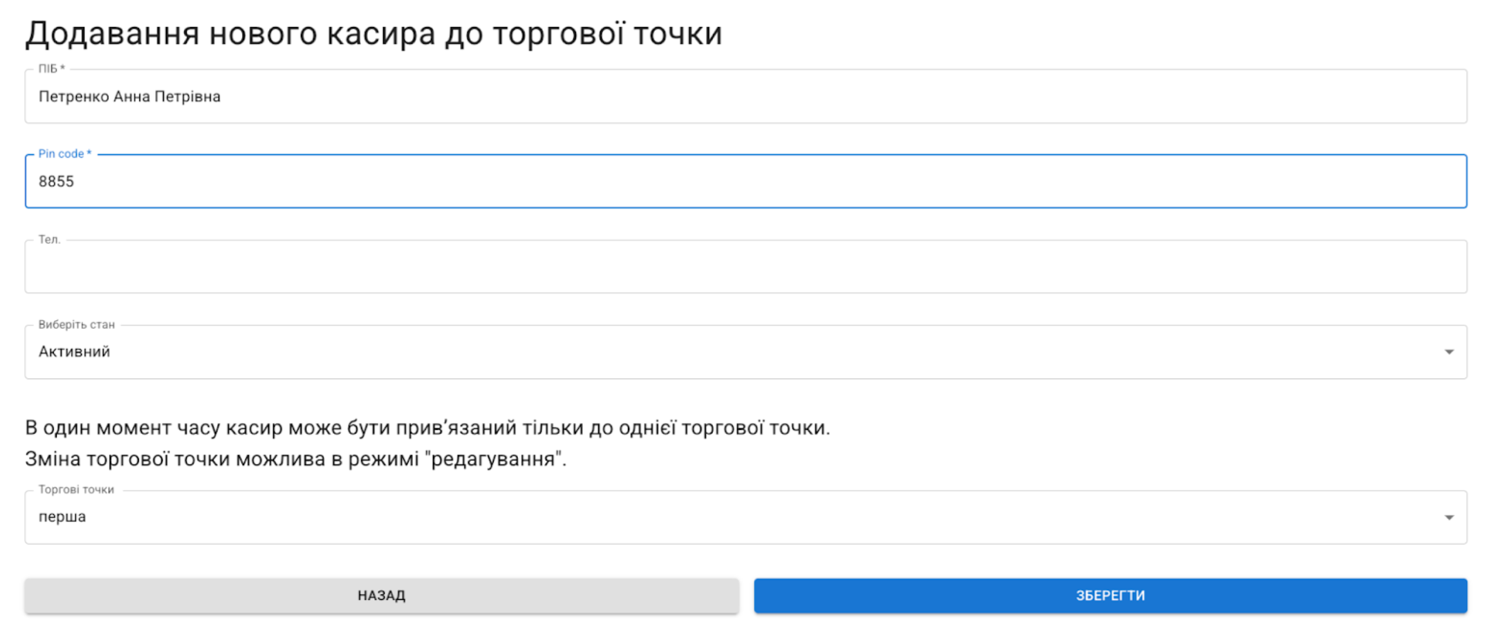 натискаємо "Додати касира" і натискаємо "Зберегти"