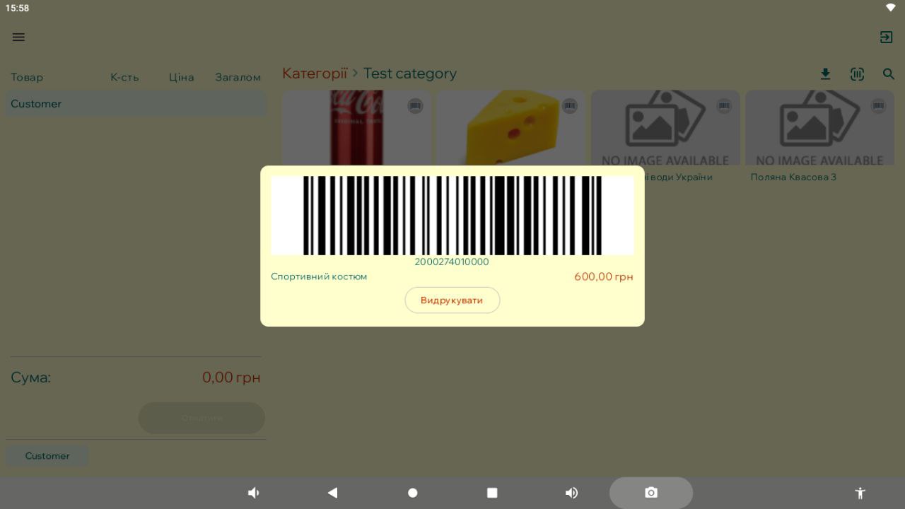 В додатку є можливість роздрукувати цінники з з внутрішнім або офіційним штрих-кодом